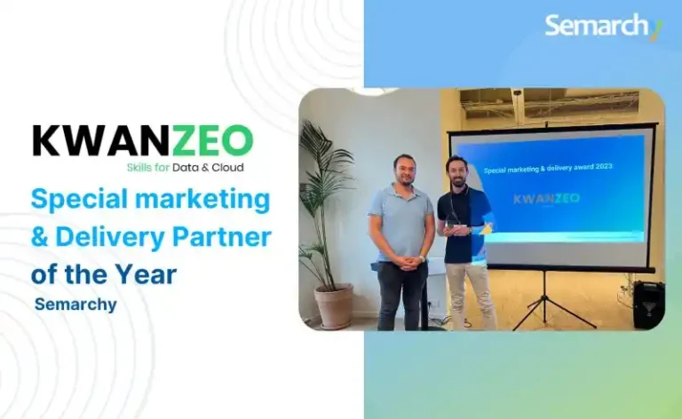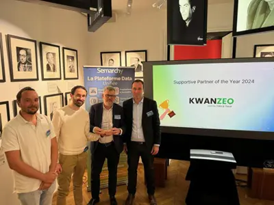 Les équipes Kwanzeo sont ravies d’avoir reçu l’Award « Supportive Partner of the Year » lors de la soirée Semarchy PartnerHub 2024 organisée au Studio Harcourt.